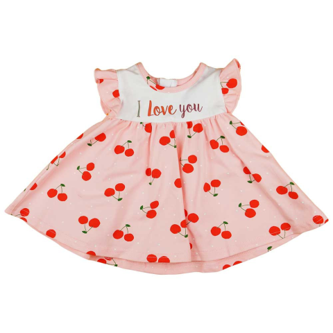 Rózsaszín ujjatlan babaruha, melyet vidám cseresznyés motívum díszít. A termék kiváló minőségű magyar gyártmány, 90% pamut és 10% elasztán keverékéből készült, amely biztosítja a tartósságot és a maximális kényelmet. A hátul cipzáras kialakítás segítségév