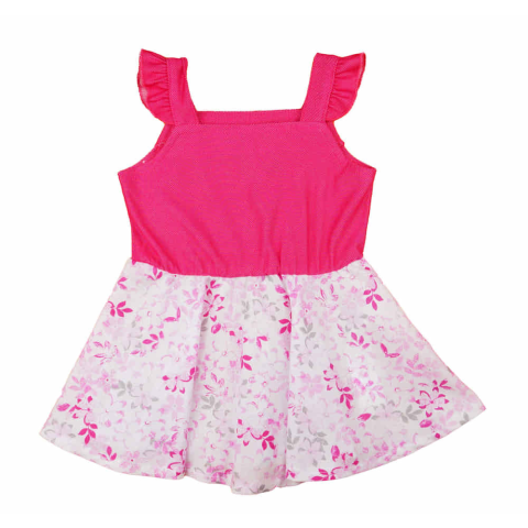 Ez a kislány ruha az ideális választás nyári napokra. Az ujjatlan, fodros vállrészletével friss és könnyű megjelenést biztosít, míg a rózsaszín virágmintája klasszikus lányos stílust ad. A 100% pamutból készült szövet jó tartást nyújt és kellemes noszogat