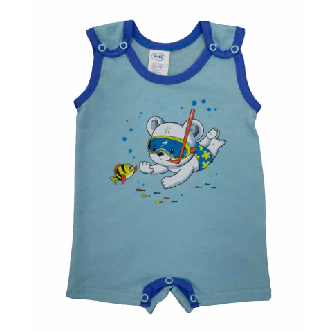 1 kép Asti Ujjatlan kisfiú napozó pamut anyagból Búvár maci mintával