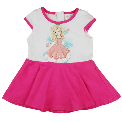 Az édes kislányokat egyaránt verwöhnt és elbűvöli ez a kiváló minőségű, hercegnős mintás ujjatlan ruha. A darab nem csupán az álmodozó gyermekek kedvence, hanem kényelmes viselet is a meleg időjárásra, köszönhetően összetételének – 90% pamut és 10% elaszt