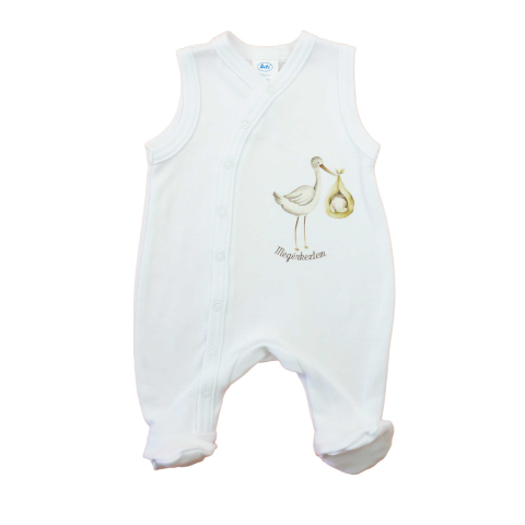 Vidám mintájú, ujjatlan pamut rugdalózó, amely tökéletes választás a meleg napokra. A vékony, 100% pamutból készült anyag kiváló szellőzőképességgel rendelkezik és maximális kényelmet biztosít a baba bőrének. Ez minőségi magyar termék, amely I. osztályú p