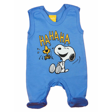 Ez a Snoopy mintás rugdalózó tökéletes választás meleg időjárásra. Az ujjatlan, vékony pamut terméket középkék árnyalatban kínáljuk, amely könnyedén összedobható bármilyen outfit-tel. A 100%-ban pamutból készült termék magyar gyártmány, amely garantálja a