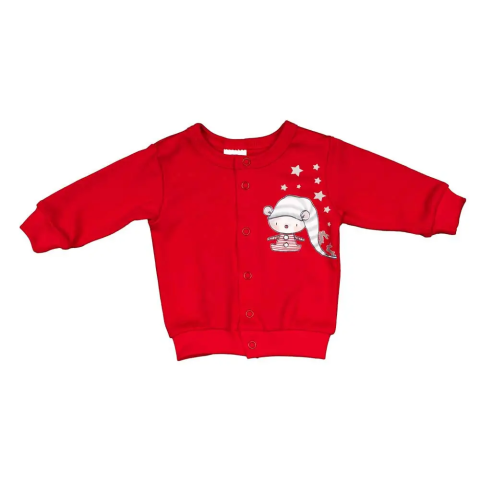 Kényelmes, vékony pamutból készült kocsikabát, amely tökéletes választás az őszi és téli hónapokra. Elején vidám manó mintával díszített, és praktikus patentzárással rendelkezik, amely nikkelmente – így biztosan biztonságos még az allergiára hajlamos babá