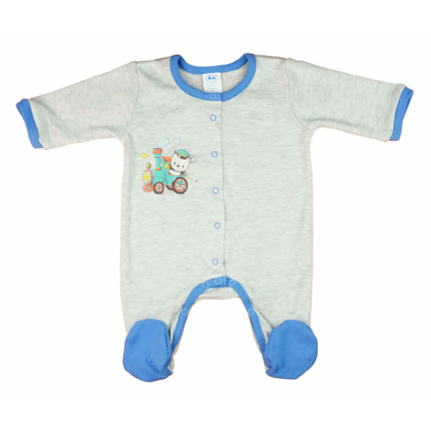 1 kép Asti Vékony, pamut, elöl patentos kisfiú rugdalózó vonatos mintával