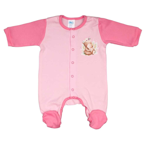 1 kép Asti Vékony, pamut, elöl patentos kislány rugdalózó Macis mintával