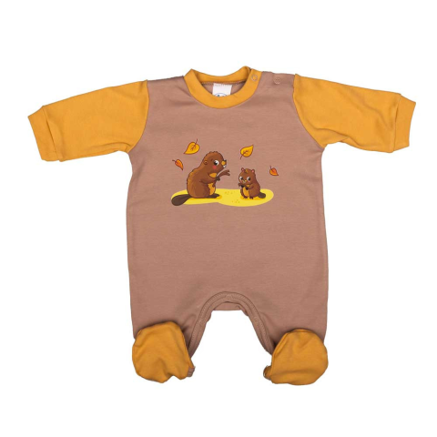 Praktikus és kényelmes választás ez a cuki hódos mintával díszített baba rugdalózó. A vállán és a láb között elhelyezett patentok nagyban megkönnyítik az öltöztetést és a peluscserét, különösen újszülötteknél és az első hónapokban nagyon hasznos. A darab