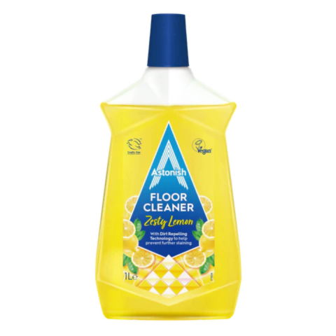 Az Astonish padlótisztító, szennyeződéstaszító technológiával készült, amely csillogó fényt és védőréteget hagy a felmosás után, megakadályozva a további foltosodást használat után. A termék újrahasznosított csomagolásban kapható, állatkísérlet-mentes,