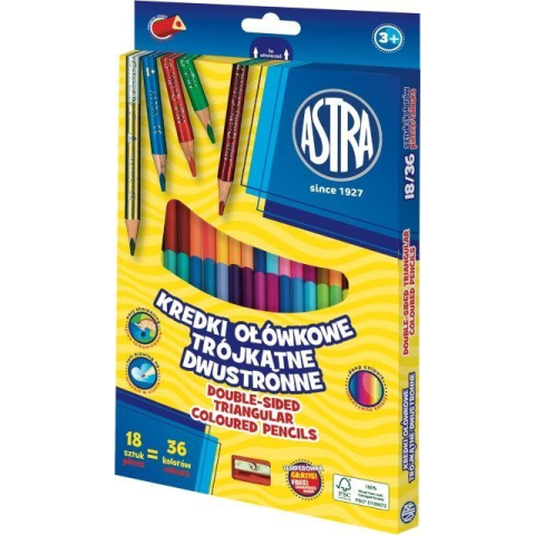 1 kép Astra Színes Ceruza Háromszögletű Duó Kétvégű Hegyezővel 18 Darabos 36 Színű (AF177AST)