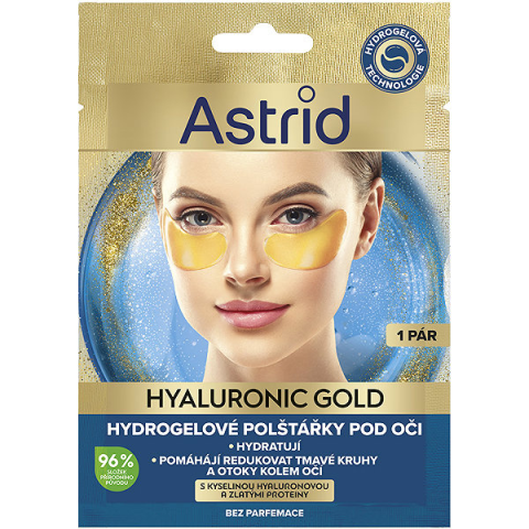 Szemkörnyékápoló - hidratáló, világosító és regeneráló, dekoratív, női, atópiás, ekcémás, érzékeny, zsíros, normál, problémás, kombinált, száraz és érett bőrre ajánlott Az ASTRID Hyaluronic Gold szemkörnyékápoló aranyfehérjékkel és ceramidokkal ellátott hidrogél szempárnák azonnali hidratálást, nyugtatást és ragyogást biztosítanak a szemkörnyéknek. Ellensúlyozza a pu