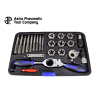 23 darabos professzionális menetfúró és menetmetsző racsnis készlet normál és sűrű metrikus méretekkel.