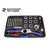 Astro Tool 23 darabos professzionális menetfúró és menetmetsző racsnis készlet normál és sűrű metrikus méretekkel. A szerszámkészlet megóvása érdekében mindig használjon vágóolajat a metszési-vágási műveletek megkezdése előtt. Még magas széntartalmú