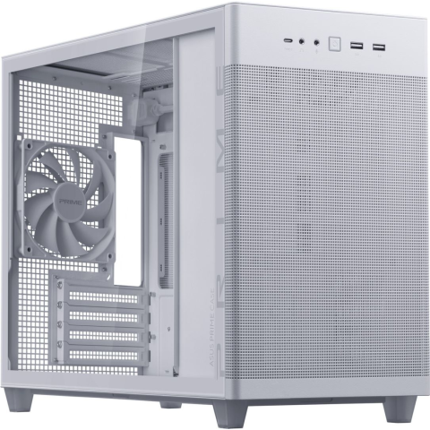 Számítógépház - mATX (Micro ATX) és mITX (Mini ITX), 1× 2,5", 3× 2.5"/3.5", USB 3.2 Gen 1, usb-c, fejhallgató, mikrofon és USB 3.2 Gen 2, 1x120mm, processzor hűtő max. magassága 170 mm, videókártya max. hossza 338 mm, tápegység nélkül, edzett üveg oldalfal A remek Mini Tower nagyságú ASUS Prime AP201 Tempered Glass White számítógépház érdekes dizájnt kínál, amelyet fehér szín jellemez. Ezt acélból készült szerkezeten alkalmazták. A mini torony szerkezet