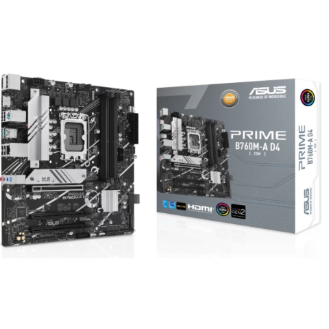 ASUS PRIME B760M-A D4-CSM típusú alaplap LGA-1700 foglalattal, Intel B760 chipsettel, Processzorban integrált videokártyával, 4 darab DDR4 memóriafoglalattal (max 128GB). 9 darab USB 2.0 port, 5 da...