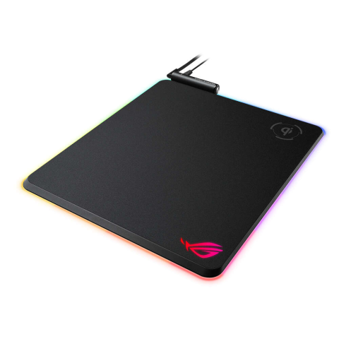 ASUS ROG Balteus Qi. Szélesség: 320 mm, Mélység: 370 mm. Termék színe: Fekete, Felület színezése: Monokróm, Háttérfény színe: Vörös/zöld/kék, Csúszásgátló alap, Játékhoz alkalmas egérpad