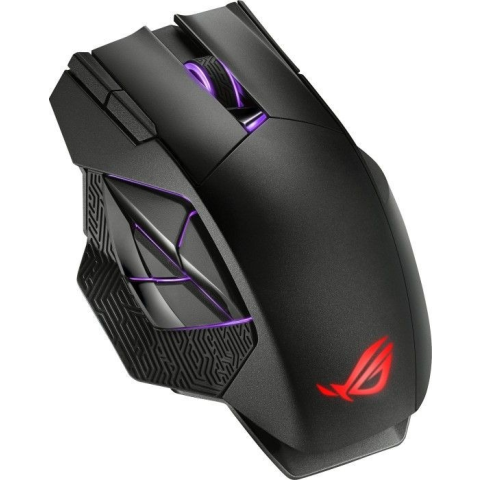 Vezeték nélküli gamer egér kétfajta csatlakozási móddal (vezetékes és 2,4 GHz-es rádiós), mágneses töltőállomással, 12 programozható gombbal, speciális hangolású 19 ezer dpi-s ROG érzékelővel, exkluzív „push-fit” kapcsolófoglalattal, ROG mikrokapcsolókkal, ROG Paracord vezetékkel és Aura Sync RGB megvilágítással. Előnyök: 12 programozható gombos megoldás különleges személyre szabási lehetőségekkel Nagyobb rugalmasság — játssz vezetékkel vagy veze