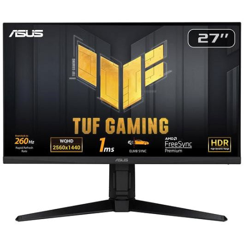 Monitor - IPS, Quad HD, 2560 × 1440 (16:9), 260 Hz, matt kijelző, 10 bit, 1 ms, G-Sync-kompatibilis, állítható magasság, hangszórók, HDMI és DisplayPort, VESA Éld át kedvenc játékaidat minőségi Quad HD (2560 × 1440) felbontásban a remek 27" ASUS LCD monitorral! A sima kép biztosításához IPS panellel rendelkezik 260 Hz képfrissítési sebességgel és 1 ms válas