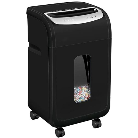Iratmegsemmisítő - P-5 biztonsági fokozat, mikro vágás, vágási kapacitás: 18 lap (70 g/m2), megsemmisíthető anyagok: CD/DVD, gemkapcsok, műanyag kártyák, tartály mérete: 30 l, visszafelé járatás, kikapcsolás túlmelegedés/túltelítettség esetén, kivehető kosár és automatikus indítás/megállítás A jól ismert AT által gyártott egy időben akár 18 papír darálására képes, méghozzá 1,98 m/perc gyorsasággal. P-5 titkosítási szintje alapján titkos iratok fel