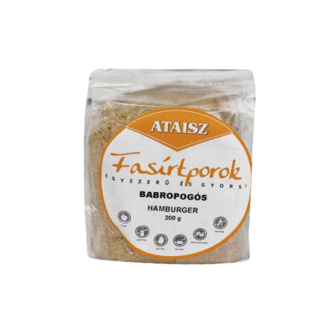 Ataisz bab ropogós hamburger 200 g Magas fehérjetartalmú fasírtpor, mely gyorsan és könnyen elkészíthető. Fogyasztható főételként salátával, főzelékekhez vagy gabonákhoz feltétként, de tehetjük szendvicsbe is.