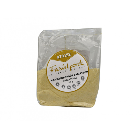 Ataisz csicseriborsós fasírtpor fokhagymás 200 g Tiszta, növényi fehérjeforrás, mely könnyen és gyorsan elkészíthető. A megadott vízmennyiség hozzáadása után, formázás és sütés után fogyasztható. Elkészítés: A tasak tartalmát keverjük el kb. 180 ml v