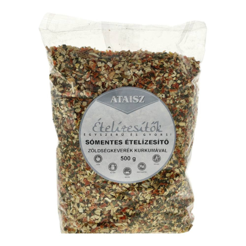 Ataisz sómentes ételízesítő 500 g Kizárólag őrölt és aprított zöldségekből és fűszerekből áll, mindennemű adalékanyagtól mentes. Kurkumával színezve. Felhasználási javaslat: A termék kiválóan alkalmas levesek, főzelékek, pástétomok ízesítésére, de bátr