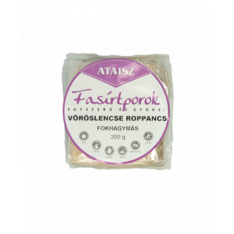 Ataisz vöröslencse roppancs fokhagymás 200 g Magas fehérjetartalmú fasírtpor, mely gyorsan és könnyen elkészíthető. Fogyasztható főételként salátával, főzelékekhez vagy gabonákhoz feltétként, de tehetjük szendvicsbe is. Elkészítési javaslat: A tasak t
