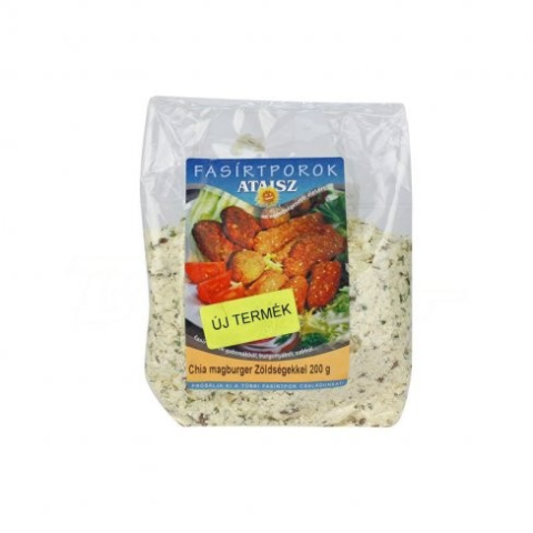 Ataisz chia magburger zöldségekkel 200 g ATAISZ chia magburger zöldségekkel Elkészítés: A tasak tartalmát elkeverjük kb. 300 ml hideg vízzel, 10-15 perc állás után, tetszés szerinti formára alakítjuk, és nem túl forró (!) olajban megsütjük. Fogyasz