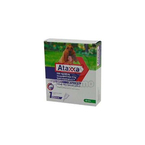 HASZNÁLATI UTASÍTÁS Ataxxa 200 mg/40 mg rácsepegtető oldat 4 kg alatti kutyáknak A.U.V.Ataxxa 500 mg/100 mg rácsepegtető oldat 4-10 kg-os kutyáknak A.U.V.Ataxxa 1250 mg/250 mg rácsepegtető oldat 10-25 kg-os kutyáknak A.U.V.Ataxxa 2000 mg/400 mg rácsepegtető oldat 25 kg feletti kutyáknak A.U.V. AZ ÁLLATGYÓGYÁSZATI KÉSZÍTMÉNY NEVE Ataxxa 200 mg/40 mg rácsepegtető oldat 4 kg alatti kutyáknak A.U.V.Ataxxa 500 mg/100 mg rácsepegtető oldat 4-10 kg-os kutyáknak A.U.V.Ataxxa 1