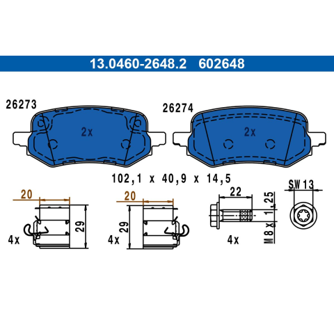 1 kép ATE fékbetétkészlet, tárcsafék ATE 13.0460-2648.2