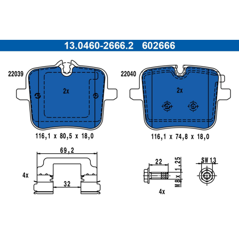 ATE fékbetétkészlet, tárcsafék ATE 13.0460-2666.2