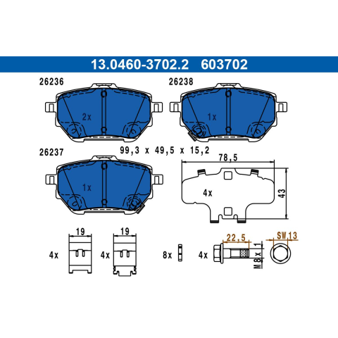 1 kép ATE fékbetétkészlet, tárcsafék ATE 13.0460-3702.2