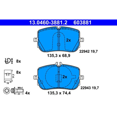 1 kép ATE fékbetétkészlet, tárcsafék ATE 13.0460-3881.2