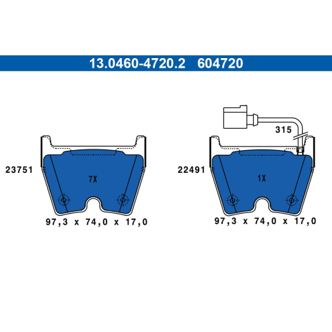 1 kép ATE fékbetétkészlet, tárcsafék ATE 13.0460-4720.2