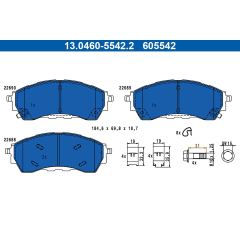 1 kép ATE fékbetétkészlet, tárcsafék ATE 13.0460-5542.2