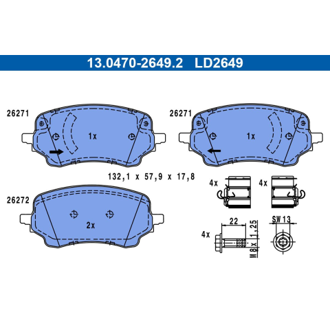 1 kép ATE fékbetétkészlet, tárcsafék ATE 13.0470-2649.2