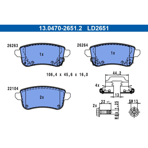 1 kép    ATE fékbetétkészlet, tárcsafék ATE 13.0470-2651.2