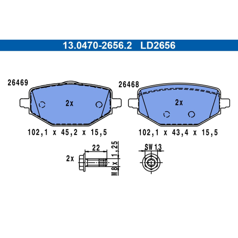 1 kép ATE fékbetétkészlet, tárcsafék ATE 13.0470-2656.2