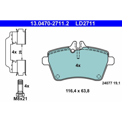 1 kép ATE fékbetétkészlet, tárcsafék ATE 13.0470-2711.2