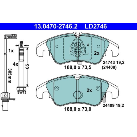 1 kép    ATE fékbetétkészlet, tárcsafék ATE 13.0470-2746.2