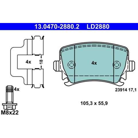 1 kép ATE fékbetétkészlet, tárcsafék ATE 13.0470-2880.2