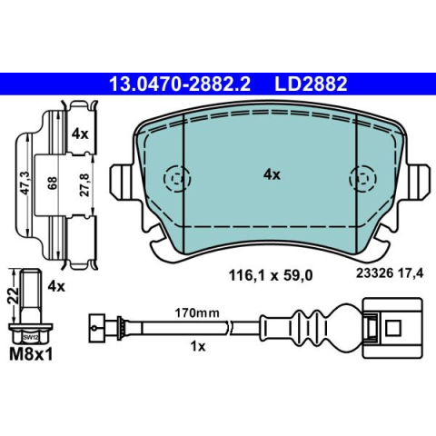 1 kép ATE fékbetétkészlet, tárcsafék ATE 13.0470-2882.2