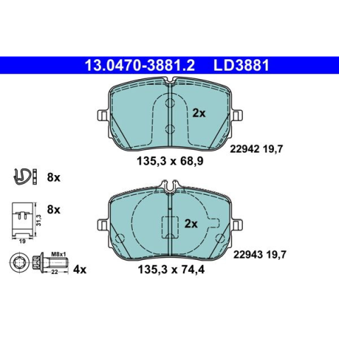 1 kép ATE fékbetétkészlet, tárcsafék ATE 13.0470-3881.2