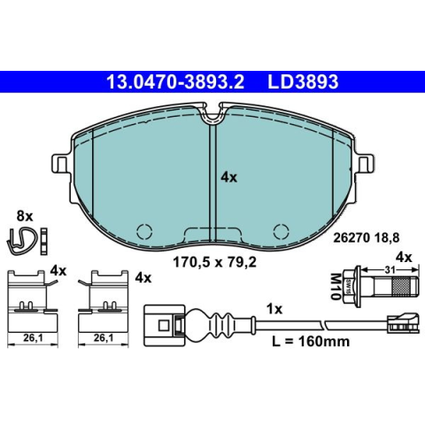 1 kép ATE fékbetétkészlet, tárcsafék ATE 13.0470-3893.2