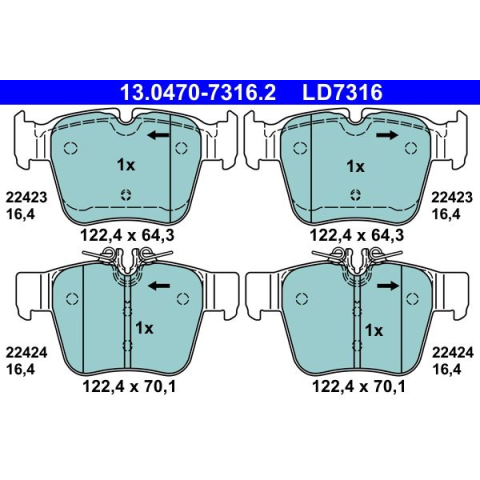 1 kép ATE fékbetétkészlet, tárcsafék ATE 13.0470-7316.2