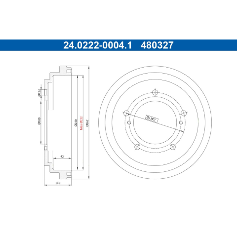 1 kép ATE fékdob ATE 24.0222-0004.1