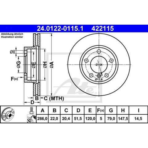 1 kép ATE Féktárcsa ATE 24.0122-0115.1