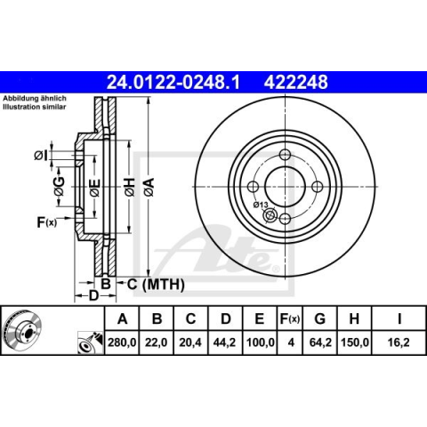 1 kép ATE Féktárcsa ATE 24.0122-0248.1