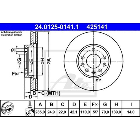1 kép ATE Féktárcsa ATE 24.0125-0141.1