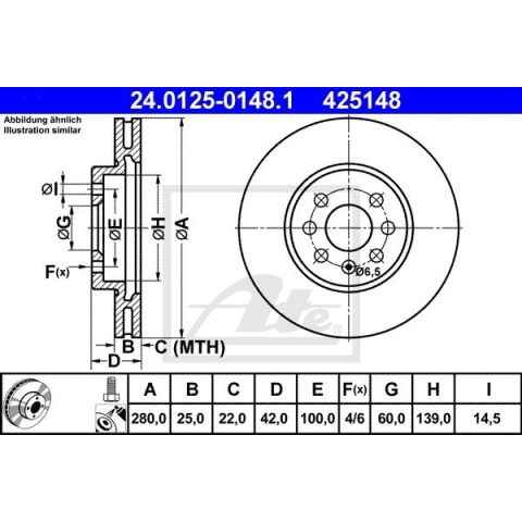 1 kép ATE Féktárcsa ATE 24.0125-0148.1