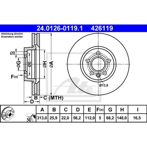 1 kép ATE Féktárcsa ATE 24.0126-0119.1