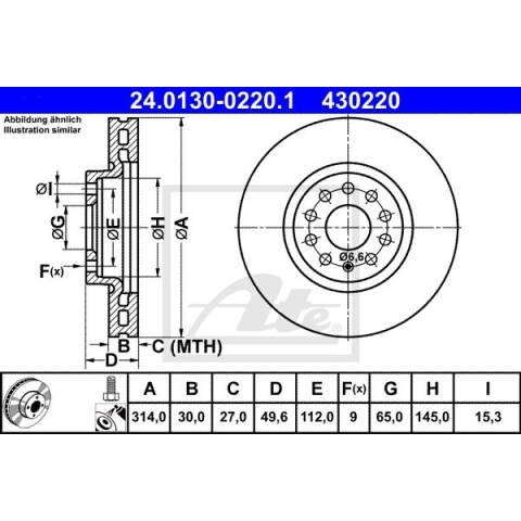 1 kép ATE Féktárcsa ATE 24.0130-0220.1